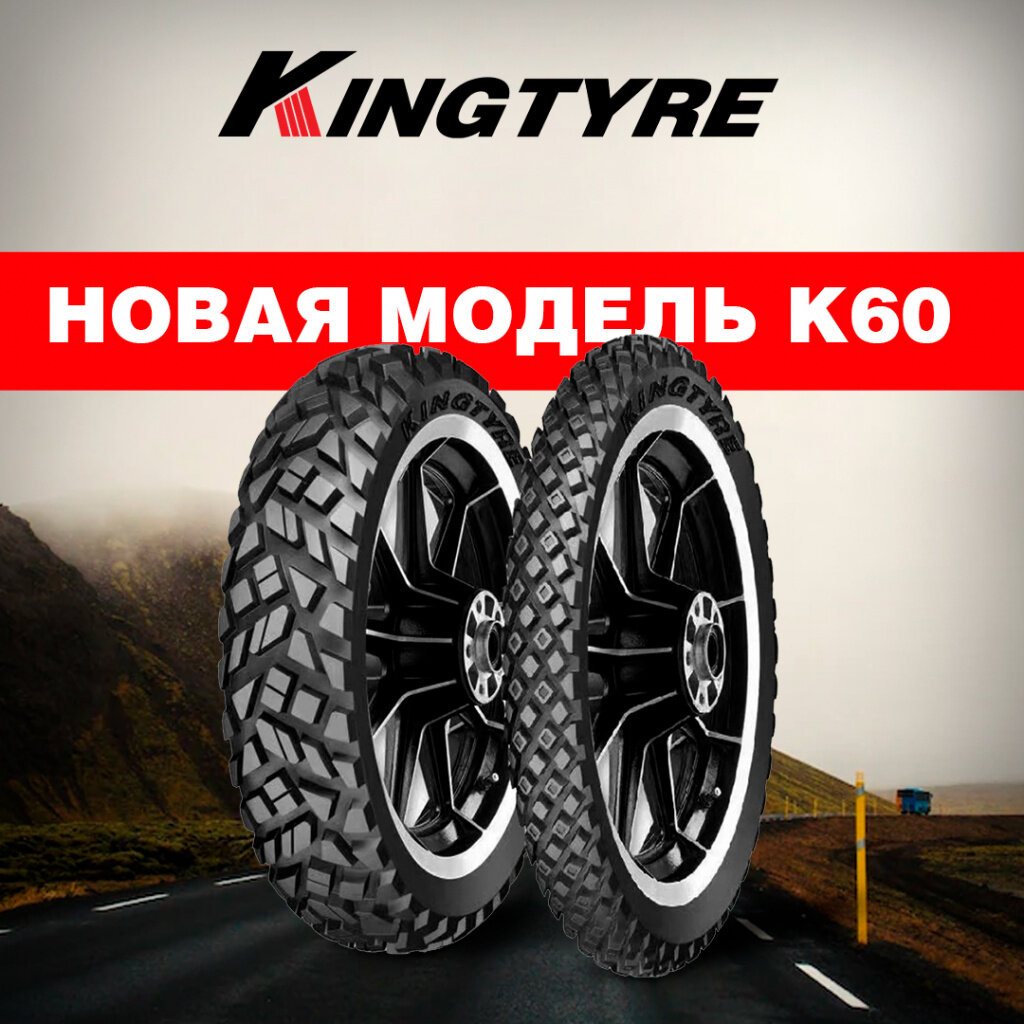 Шины Kingtyre K60 Резина Kingtyre K60 позволяет доехать по асфальту до начала внедорожного участка и сходу, не переобуваясь, уехать туда, где вместо дорог только направления. Она позиционируется, как 50/50, то есть минимум 50% пробега у вас должно быть запланировано без асфальта под колёсами. Эта резина не для того, чтобы проехать полторы тысячи ради стокилометрового прохвата по горным дорогам. Это про настоящий внедорожный туризм. Хитрость её рисунка в том, что шашки расположены не поперечными рядами, как на кроссовой резине, а диагональными. Так при сохранении агрессивности протектора и внедорожной высоты шашки удалось радикально снизить вибрации и гул при езде по асфальту, а также исключить подламывание резины при прохождении поворотов на жёстком покрытии. При езде по мягким грунтам кубики на передней покрышке и кубики с треугольниками сзади хорошо врезаются в грунт и работают не только верхней плоскостью, но и боковыми гранями, обеспечивая хорошее сцепление при разгоне с торможение