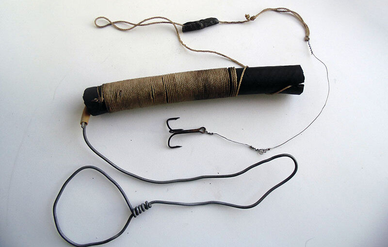 Для поимки щуки не мешало бы смастерить снасть под названием поставушка, причём ловить хищницу на неё одно удовольствие, рыбалка получается спокойной, без суеты. Контролировать снасть на постоянной основе не нужно, достаточно будет раз в день или в три дня проверять её, главное, чтобы живец у вас был шустрый и таким оставался подольше, а это немаловажно. Смастерить поставушку можно самому, затрат практически никаких, хотя есть несколько вариантов, мы сделаем самый распространённый. Нам понадобится кусок шланга, кроме этого, нужна палка, ещё возьмём грузило, моток лески и несколько крючков, а также шило и ножик. На одном конце у основания шланга проткнём шилом насквозь отверстие, проденем леску и сформируем петлю. Далее, переходим к продеванию основной лески и надёжно закрепим её на шланге. Остальное мы намотаем на серединку шланга, при этом оставим немного лески, она нужна будет для поводка с крючком и вертлюгом. Мы зафиксируем леску в том месте, где у нас находится разрез на шланге, к