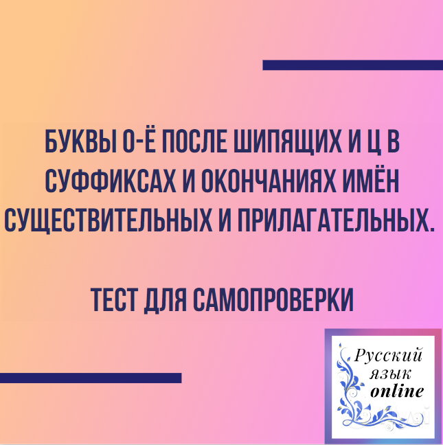 Буквы О-Ё после шипящих и Ц в суффиксах и окончаниях имён существительных и прилагательных. Тест для самопроверки