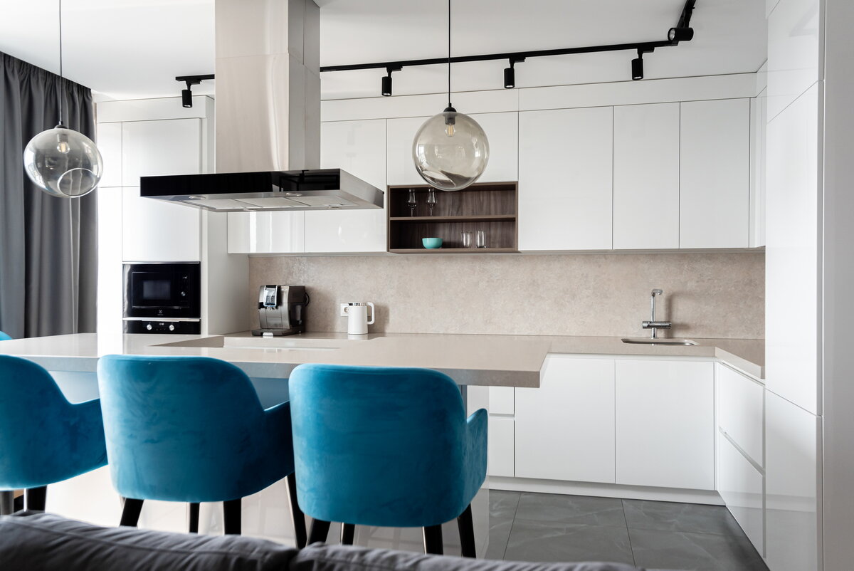 Чтобы сделать кухню максимально удобной в обслуживании, перед созданием проекта руководствуйтесь простым общим принципом - делайте выбор в пользу гладких и цельных поверхностей. Стыки, резьба, филенки, углы, выступающие части, ниши и пр. по возможности минимизируйте. ФАСАДЫ И РУЧКИ Массив или МДФ/ЛДСП? Фасады из массива конечно оптимальный вариант. Текстуры дерева легко моются и дополнительно маскируют разнообразные загрязнения. Древесина более долговечна, чем МДФ или ЛДСП и легко реставрируется в случае существенных повреждений. Выбирая МДФ с точки зрения практичности лучше всего крашеные фасады, с ними меньше всего хлопот при уборке. Наиболее практичным покрытием для ЛДСП являются структурированные пластики (синкрон, тимбер, клиф и пр.), они обладают средними показателями мата и глянца, а красивые текстуры камня или дерева успешно маскируют любые загрязнения. Светлая или темная?