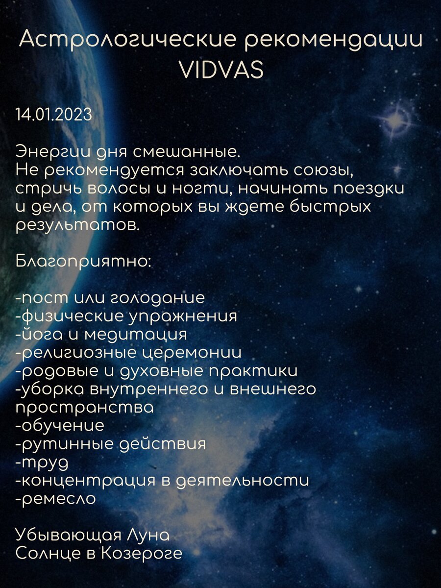 Астрологические рекомендации VIDVAS на 14 января 2023
