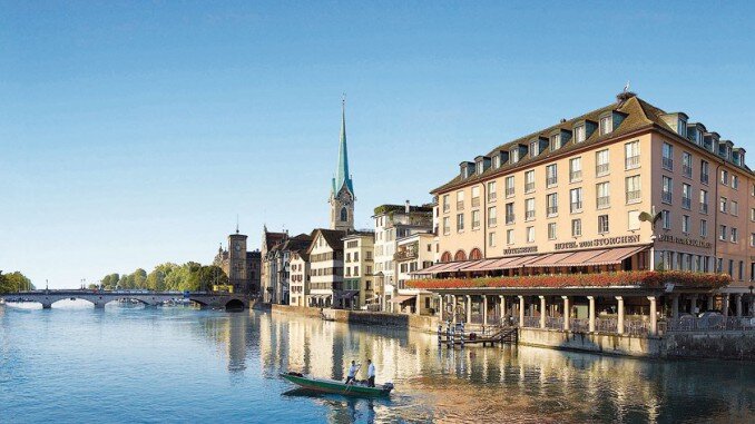 Расположению уютного отеля «Zum Storchen» можно только позавидовать: он находится прямо на берегу реки Лиммат, в самом центре Цюриха на красивой и романтической площади Вайнплатц (Weinplatz). У этого отеля есть свой собственный лодочный причал, чем не может похвастаться никакой другой отель Цюриха. С этого причала можно отправиться на экскурсию по Цюрихскому озеру. Отсюда можно насладиться потрясающей панорамой исторического центра города. Знаменитая улица Банхофштрассе, площадь Парадеплатц и церковь Фраумюнстер находятся буквально в нескольких шагах от него. До Центрального вокзала Цюриха от отеля «Zum Strochen» можно дойти пешком за 10 минут. Этот отель был построен 650 лет назад, первое письменное упоминание о нем в налоговом кадастре Цюриха относится к 1357 году. Никто не может точно сказать, откуда взялось название «Zum Storchen» — «У аиста». Возможно, такое название связано с тем, что в старину в этом месте действительно частенько гнездились эти красивые птицы. Отель был построен