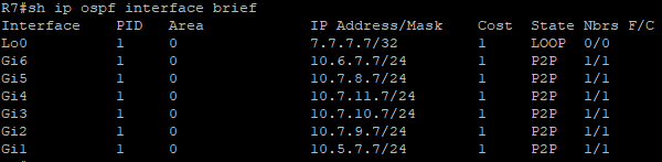 Проверим какие интерфейсы у нас относятся к OSPF с помощью команды: