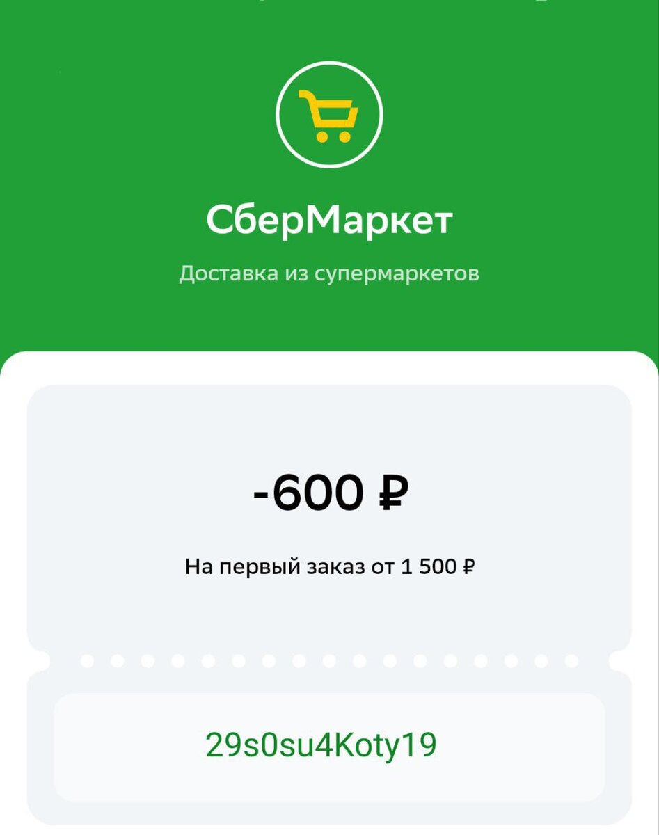 Получаем скидку 600₽ при покупке от 1500₽ в СберМаркет.