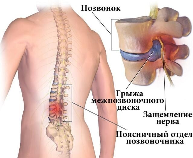 Помимо возраста, факторами, способствующими образованию поясничной грыжи, являются: