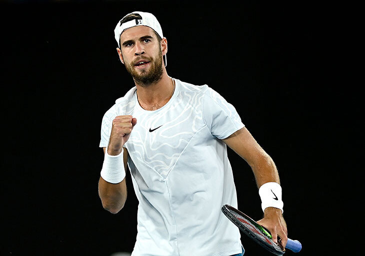Верит в себя, и это видно. Карен Хачанов – полуфиналист Australian Open! Россиянин уже четыре года не выигрывал титулов, больше трех лет не побеждал парней из топ-10, но на «Больших шлемах» в последнее время он просто красавчик. В конце прошлого сезона Карен пробился в полуфинал US Open, а теперь вышел в 1/2 и в Мельбурне. За счет этих больших результатов он в понедельник вернется в топ-15 (впервые с марта 2020 года), а в случае дальнейших побед может обойти Даниила Медведева и вернуться в топ-10. На Australian Open он пока не встречался с соперниками, которые намного выше него в рейтинге, но свое дело он делает красиво и уверенно. И это как раз то, его ему не хватало во времена кризиса, наступившего после прорывного сезона-2018. Правда, четвертьфинал против Себастьяна Корды (впечатляюще выбившего Даниила Медведева) закончился грустно – американец снялся из-за травмы правого запястья при счете 7:6(5), 6:3, 3:0 в пользу Карена. *** Не очень понятно, когда Себастьян травмировался. Уже в