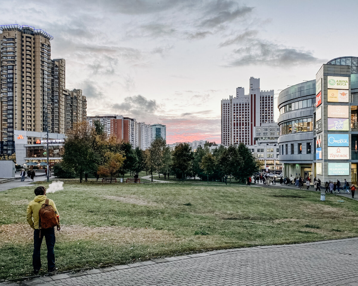 Или Проспект Вернадского с тёмным БЦ «Академик».