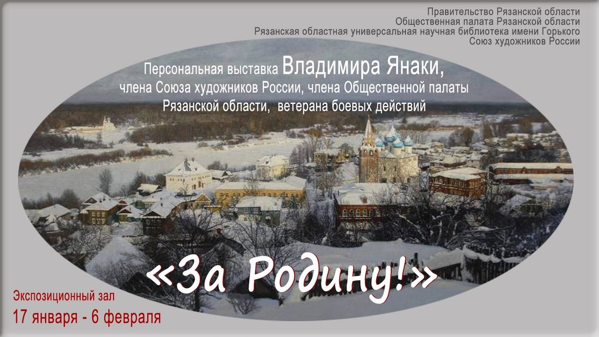 В экспозиционном зале библиотеки имени Горького работает персональная выставка члена Союза художников России, члена Общественной палаты Рязанской области, ветерана боевых действий Владимира Викторовича Янаки. Основной темой творчества Владимира Янаки является возрождение России, жизнь ее малых городов. Выбрав путь продолжателя традиций русской реалистической школы, Владимир Викторович считает важным сохранить в своих картинах то, что делает узнаваемой русскую живопись в современном искусстве. Изучая технику старых мастеров реалистической школы, художник выработал свой, хорошо узнаваемый, творческий метод.
