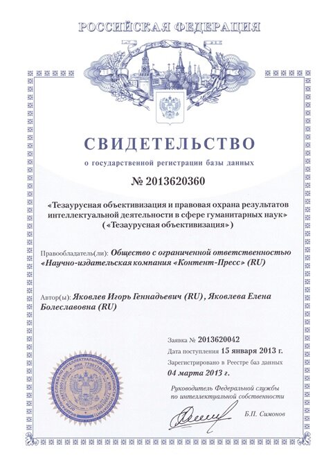 «Тезаурусная объективизация и правовая охрана результатов интеллектуальной деятельности в сфере гуманитарных наук» («Тезаурусная объективизация»)