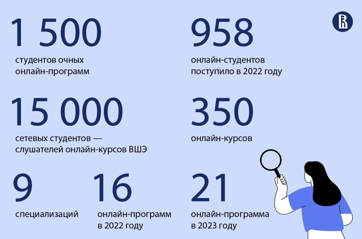 На онлайн-курсах от ведущих ученых НИУ ВШЭ теперь обучается более 15 000 сетевых студентов из вузов России и стран СНГ. В 2022 году количество онлайн-курсов выросло до 350.