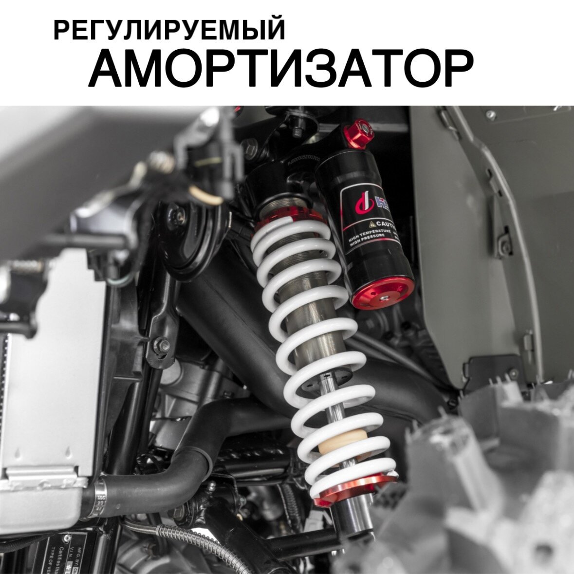 Модели квадроциклов Hisun Tactic 750 и Tactic 1000 оснащены регулируемыми амортизаторами с выносным резервуаром. На модели Tactic 750 такие амортизаторы ставятся на переднюю ось, а на модели Tactic 1000 – и на переднюю, и на заднюю оси.