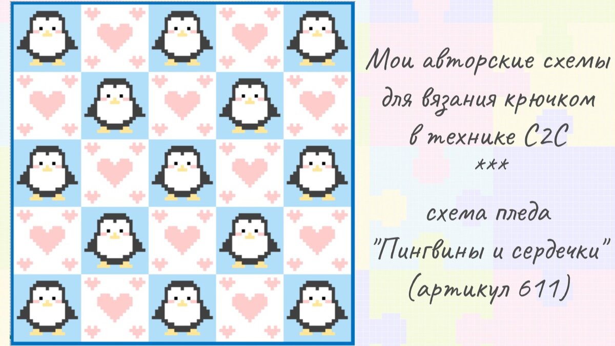 Схема пледа "Пингвины и сердечки" (артикул 611).