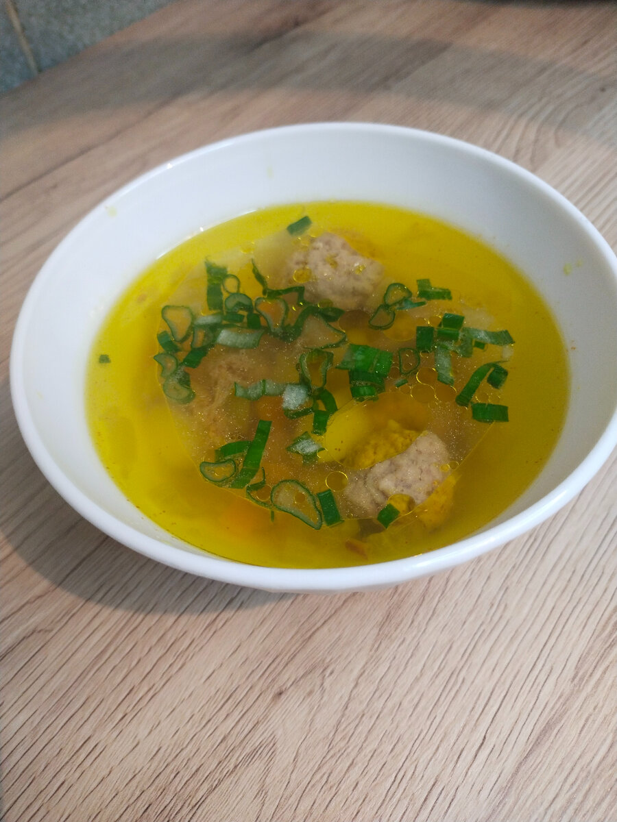 Ингридиенты: Фарш- 200-300 гр Молотый перец по вкусу Соль по вкусу Основа блюда: Лук репчатый -1 шт Морковь- 1шт Болгарский перец – 1 шт Острый перец- ½ небольшого стручка Картофель- 3-4 шт Растительное масло для постройки овощей 2-3 ст. ложки Соль по вкусу Сладкая молотая паприка ½ чайной ложки Зелёный лук 1 небольшой пучок Куркума на кончике ножа Вода 2,5 литра Первый этап: Смешиваем фарш, соль, молотый перец и оставляем на 10-15 минут настоятся. Формируем небольшие фрикадельки. Переходим ко второму этапу: Очищенный картофель, морковь, репчатый лук нарезаем на кубики. Болгарский перец моем, срезаем верхушку, убираем семена и перегородку, шинкуем на кубики Острый перец - нарезаем тонкими колечками, убираем семена Наливаем в мультиварку растительное масло, включаем функцию жарки и обжариваем овощи по мери их готовности: сначала морковь, она должна предать золотистый цвет маслу, затем добавляем перец и потом лук, который должен стать мягким, а не зажаренным. Выкладываем в мультиварк