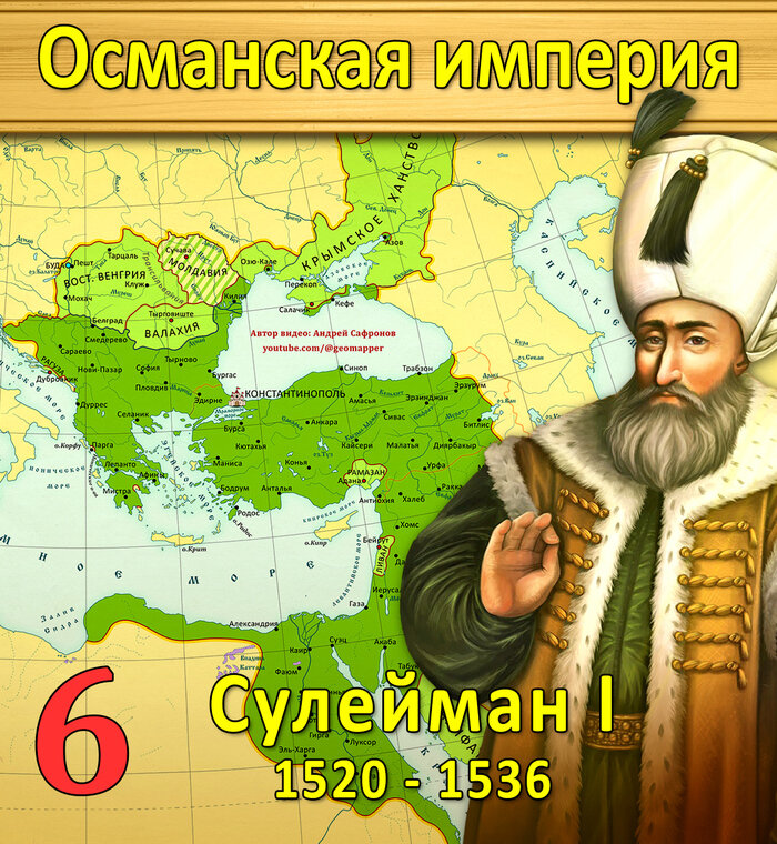 Анимированная история Османской империи на карте. Великолепный век Османской империи, апогей её могущества. В этой серии вы увидете правление султана Сулеймана Великолепного с 1520 по 1536 года. Вас ждёт: возвышение Ибрагима-паши и Хайреддина Барбароссы, интриги Хюррем Султан, завоевание Венгрии, изгнание Госпитальеров с Родоса, крымские походы на Русь, восстания Джелали, войны с Габсбургами и Сефевидами и многое другое. СМОТРЕТЬ ВИДЕО НА КАНАЛЕ ГЕО-КАРТОГРАФ. Сулейман считается величайшим правителем Османской империи. При нём Османская империя была на пике. Видео в 4К качестве, анимация карты 60 кадров в секунду, смотрите на моём ютуб-канале Гео-Картограф. От отца, Сулейману досталась могущественное государство, простирающееся на три континента. Сулейман вёл войны на два фрона, с Габсбургами на западе и с Сефевидами на востоке. Смотрите видео. Сулейман правил 46 лет, с 1520 по 1546 года. Уместить всё в одной серии у меня не получилось, поэтому про Сулеймана будет целых 3 серии. И перв