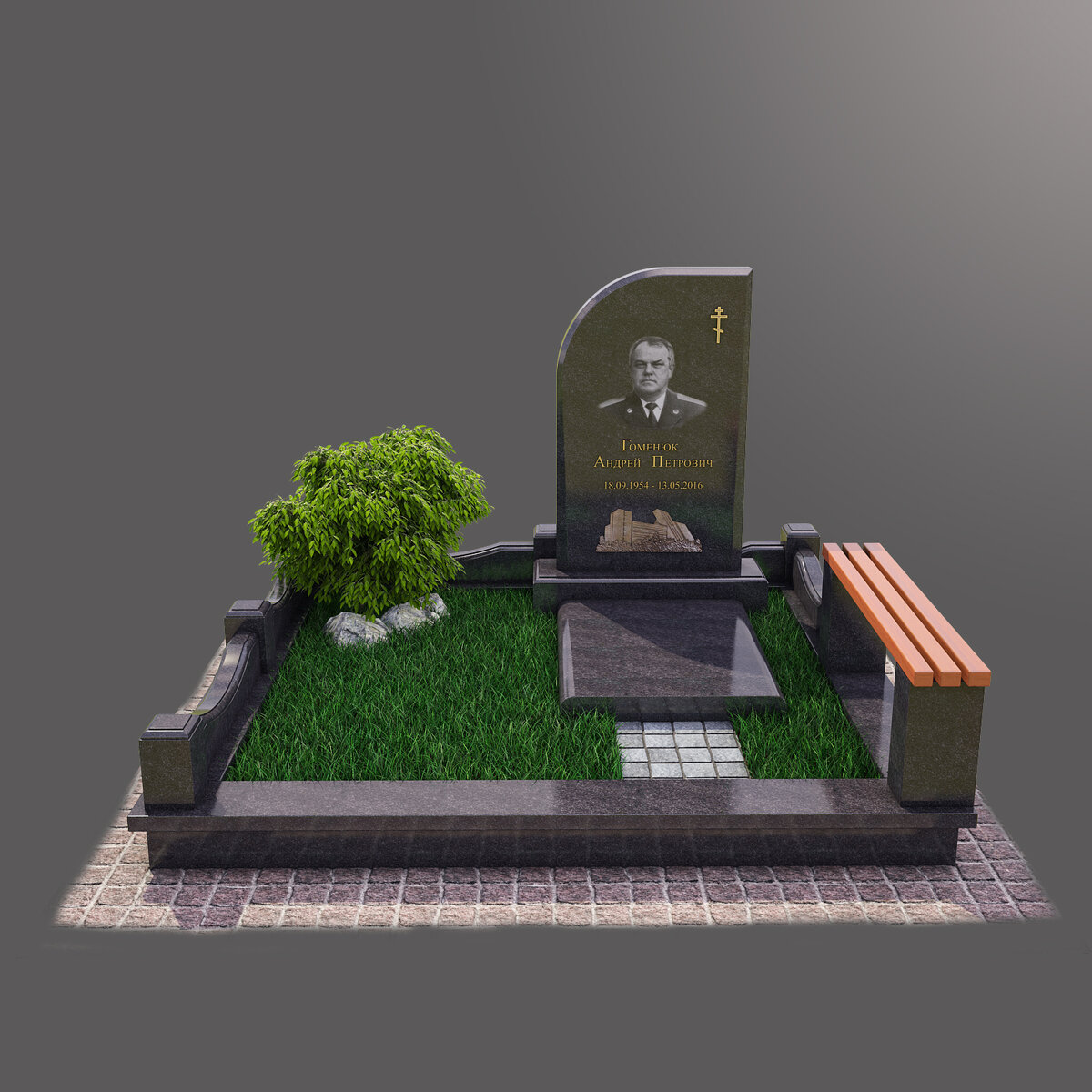 Изготовили и установили мемориальный комплекс на Краснознаменском кладбище, МО. Материалы: гранит диабаз - Карелия, бронза- скульптурная работа, портрет гравировка, ландшафтные работы. Стоимость от 400.000 тысяч рублей, зависит от всех пожеланий клиента. Срок реализации проекта - 3 месяца.