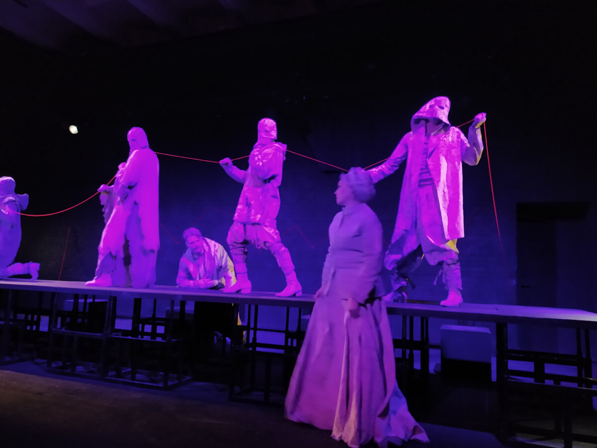 Впрочем, вряд ли им это поможет: актеры не выдерживают такой медленный темп: много пауз, сцену в театре развернули поперек, отчего актеры стали еще ближе к зрителями и стало еще заметнее, что они не держат первый план. Держали план те, кто на вторых ролях, потому что у них концентрированные динамичные реплики. У главных - много пауз, но ни тишину, ни отсутствие движений они не выдерживают, темп спектакля медленный, мало звуков, актеры не справляются с паузами, их позы, лица не выдерживают долгого всматривается. Много пустого, занять это они не умеют. Обычно у этого режиссера очень насыщенная звуковая дорожка, а тут постоянная тишина, в которой нет ни текста, ни действий. Зритель сосредоточен на фигурах актеров и видит, что актеры-то не так хороши в игре: за обилием действия, текста, шума этого не видно, но если все сидят за голым столом и молчат, зритель вглядывается в каждое движение мышц на лице, в положение пальцев, в складки на тоге и... и видит, что все не очень гладко.