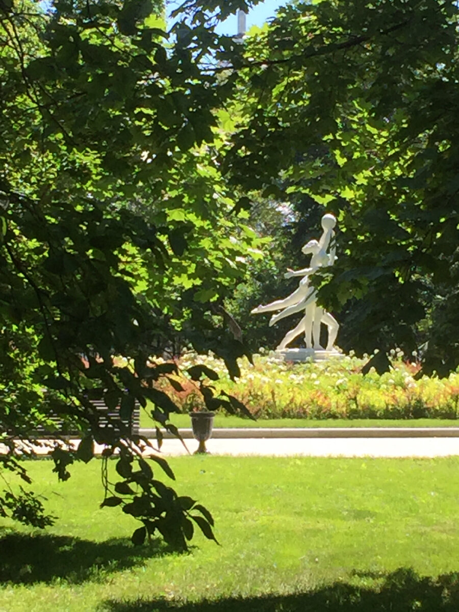 И белые скульптуры, сохранившиеся еще с довоенных времен. Мне кажется, очень удачно с тонким юмором сейчас обыгранные.