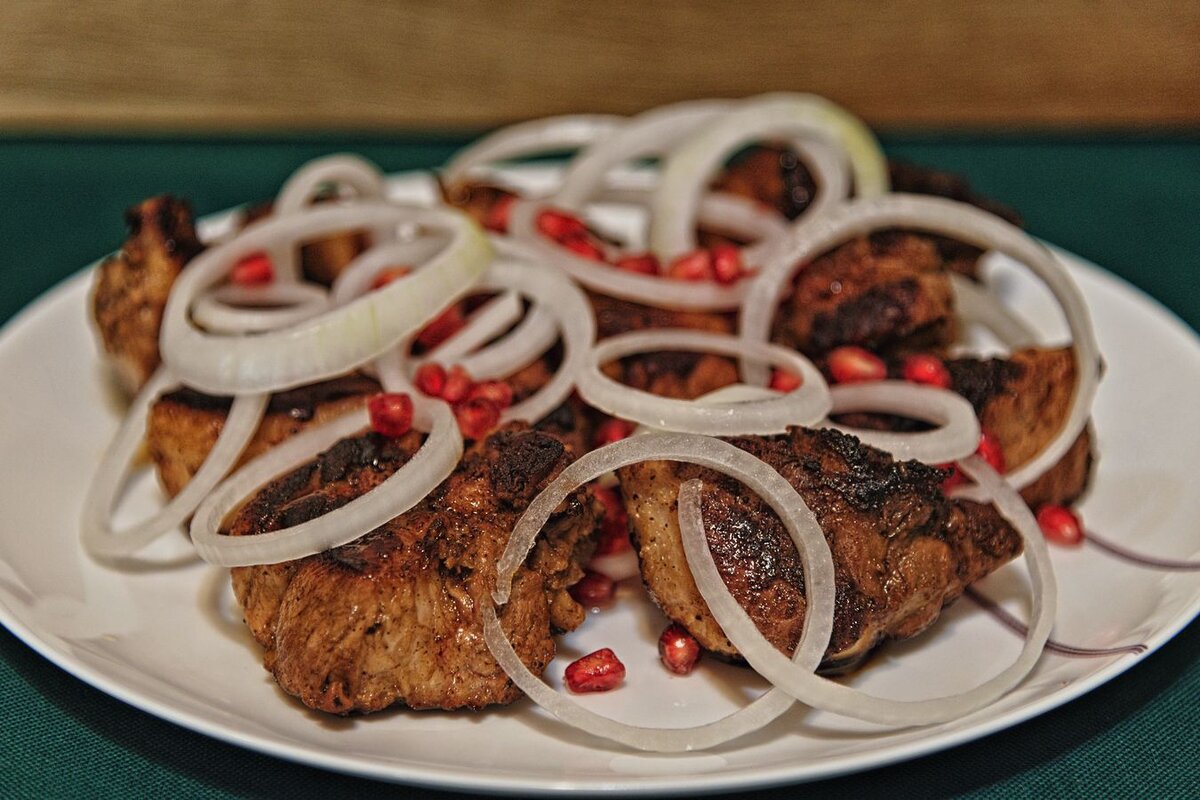 Шашлык на сковороде по грузинскому рецепту и испанский цитрусовый салат (вот такой микс, да))