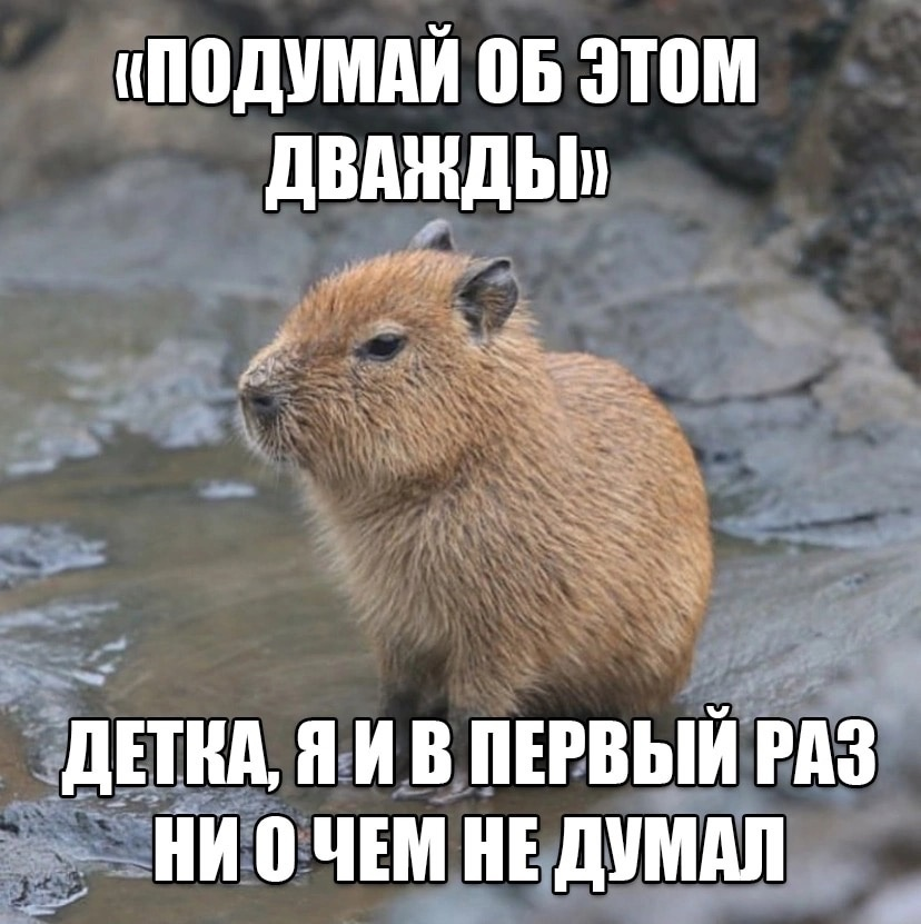 Мемы и очень правдивые факты! Капибары — очень социальные животные, которые живут группами по 10 штук. В сезон дождей можно встретить группы и до 40 особей, состоящие из одного доминирующего самца, самок и подчиненных самцов, а также детенышей. Капибары — травоядные животные. В основном они питаются водными растениями, травами, фруктами и корой. Их рацион меняется в зависимости от времени года, но едят они много — взрослые особи потребляют от 6 до 8 килограммов в день. В сухой сезон они добавляют в свой рацион тростник, зерно, дыню и тыкву. Чтобы избежать встречи с хищниками, капибары предпочитают питаться на рассвете или в сумерках. Коты настолько привередливы и упрямы, что в случае необходимости они могут промяукать в течение нескольких часов. При этом им не нужен будет отдых. Кошки способны давать потомство очень часто. Рекордсменкой по количеству приведенных котят является кошка по кличке Дасти. Она дала жизнь 420 котятам. Бытует мнение, что все коты без исключения любят рыбу,