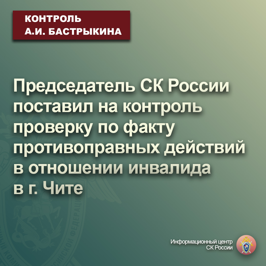 Председатель СК России поставил на контроль проверку по факту противоправных действий в отношении инвалида в г. Чите