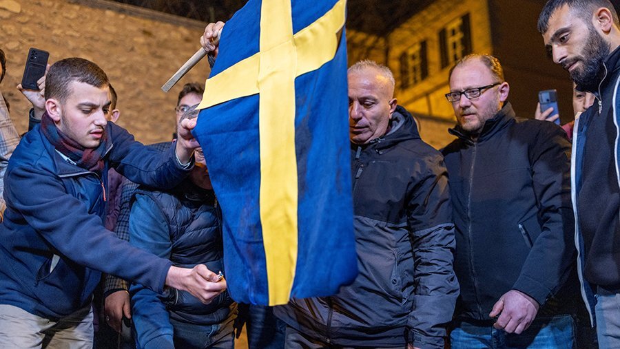 Иногда мне кажется, что Европа сошла с ума, с упорством фанатика занимаются самобичеванием. Ну вот зачем нужно было СЕЙЧАС Швеции сжигать коран и "вешать" Эрдогана. Какую они реакцию ждали? Что Эрдоган их примет в НАТо. Но это уже к Лаврову. Хорошо, что пока флаг сожгли... В ответ на акцию в Стокгольме, где ультраправый политик Расмус Палудан сжег Коран у посольства Турции. СМИ писали, что он получил разрешение на эту акцию от шведских властей. Шведы в ответ на акцию с флагом, используют баннер с лицом Эрдогана, как половую тряпку в Стокгольме. Не буду оракулом, если скажу, что дальше начнутся и силовые акции со смертями...