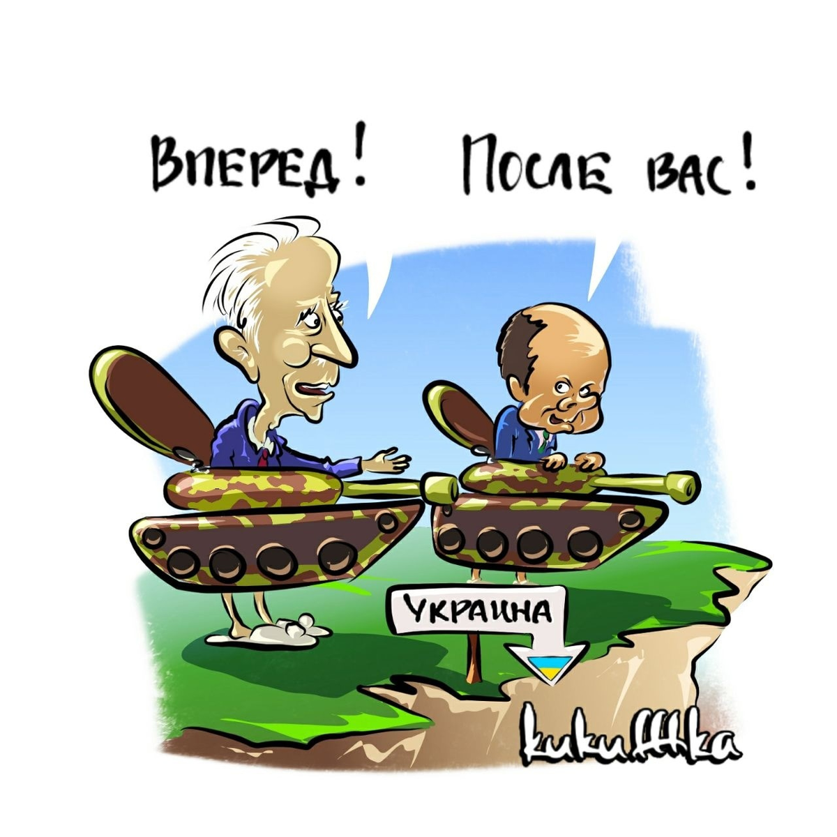 Именно такой картинкой можно охарактеризовать итоги Рамштайна. Мы долго говорили, говорили, но так ни к чему и не пришли. Вопрос повис в воздухе. Много за и много против, будем ещё решать. То есть переговорный процесс будет идти дальше. Не хотят пока немцы поставлять танки на Украину. Возможно это генная память, а может опять крайними не хотят оставаться, когда всей Европой nach Osten, а виноваты потом только одни немцы. Многие справедливо пишут: сначала танки, потом самолёты и корабли, а под конец и deutsche Soldaten окажутся на восточном фронте. Кстати, Бундесвер уже пожаловался, что контрактники расторгают свои контракты. Одно дело служить в тёплых и цивилизованных казармах и получать хорошие зарплаты и социальные привелегии, другое дело идти реально воевать. А вот поляки готовы уже и без согласия Германии поставлять Леопардов на Украину. Правда за такое нарушение договорённостей предусмотрены строгие санкции и серьёзные штрафы. Но кого они останавливают в наше время. Тем более пол
