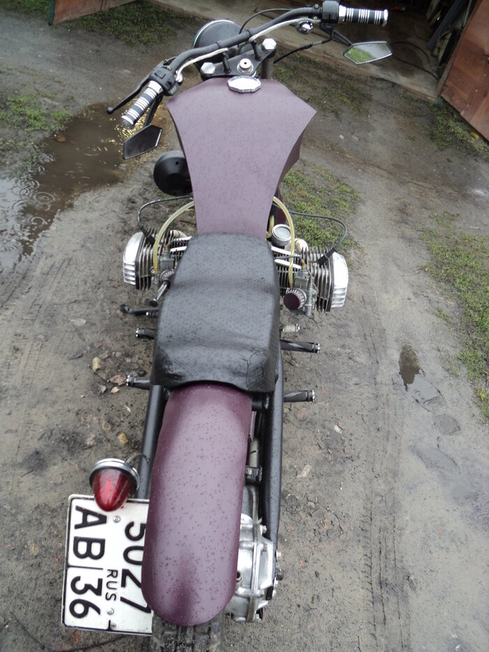 Всем привет! Как и обещал, выкладываю одну из поделок)) Это мотоцикл днеп мт9 (6 -ти вольтовый), год выпуска не установлен, но мотоцикл стоит на учёте и имеет ПТС. Конечно все переделки не оформлены и вопросы: как ставить на учёт при продаже? и как ездить? не стоит задавать. В наше время все решается. Переделка по времени заняла около года. Мотор полностью разбирался и дефектовался. Цилиндры расточены и подобраны соответствующие ремонту поршни. Кольца Ваз, клапаны от старенькой БМВ подошли по диаметру, длина естественно подогнана. Направляющие клапанов заменены, проточены под маслосъёмные колпачки, в оригинале их нет. Седла прирезаны и притерты соответственно. Генератор заменён на 12 вольт через план-шайбу и удлиненную шестерню генератора. Вся электрика 12 вольт. Венец маховика изготовлен индивидуально с нарезанным зубом под стартер ваз 2110 семейства. Стартер установлен на место воздушного фильтра. Зажигание бесконтактное, по-моему оно называлось "Саруман" если мне не изменяет память