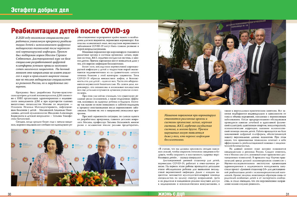 В 2020 году московские специалисты разработали уникальную программу реабилитации детей с использованием цифровых медицинских технологий после перенесенной коронавирусной инфекции. Проект был поддержан мэром Москвы Сергеем Собяниным.