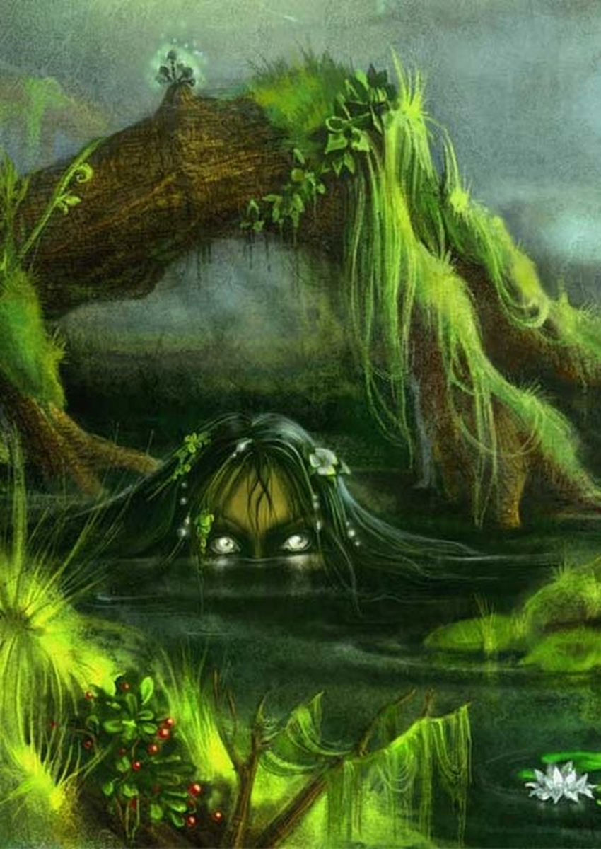 Как только к воде стали подходить Иван с Ольгой, повстречалась им знахарка. Было видно, что девушка испугалась. А, лицо её исказилось в злобной гримасе.