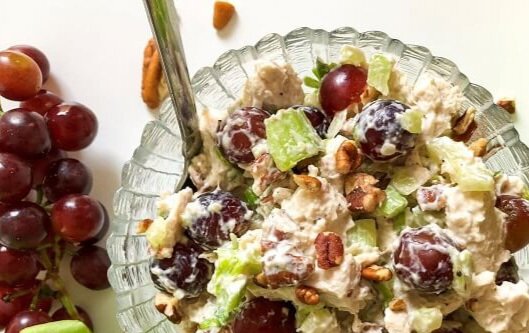 Простейший в приготовлении, но далеко не простой на вкус: салат с курицей и виноградом.