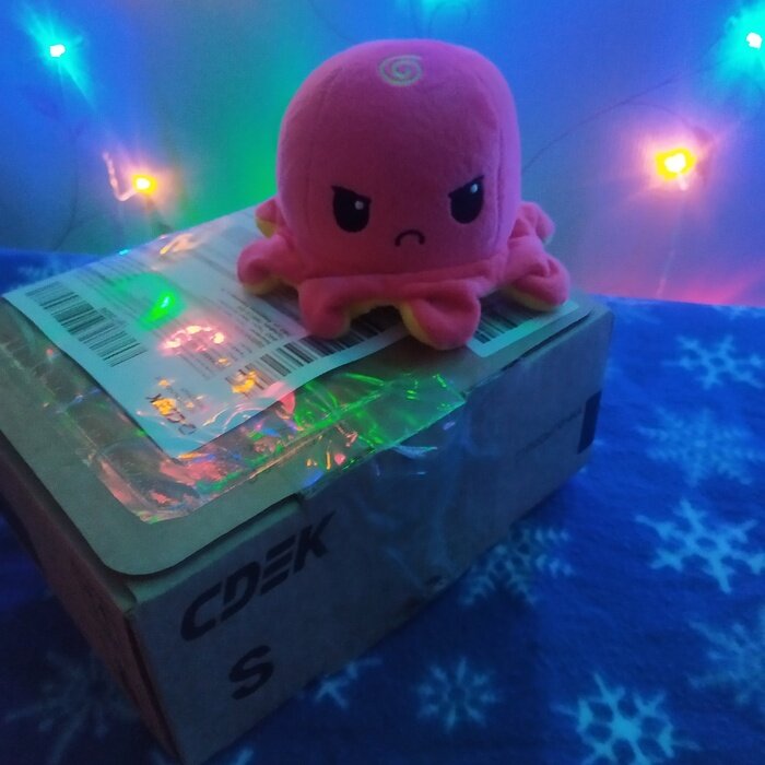 Здравствуйте, дорогие пикабушники! Наконец-таки мои загребущщщие руки добрались до подарка от Тайного Санты (я немного был нерасторопен и подарок чуть от меня не уехал, спасибо доблестным эльфам СДЭКа, что пошли навстречу и не дали подарку от меня уйтить) Помогать мне в прекрасном деле будет мой очень недоверчивый, но справедливый инспектор Осьминожка! Прошу любить и жаловать. (она не грустная, он невыспавшаяся) Инспектор Осьминожка, как и я, очень сгорала от нетерпения и буквально требовала открыть подарок, дабы убедиться, что товарищ Санта не положил туда углей (я искренне надеюсь, что был послушным весь предыдущий год!) И вот, настал момент открытия подарка! Шоку моему не было предела - здесь же все, что я указывал! Даже письмо (его я не покажу, это личное, но скажу, что мой Санта - замечательный! и у него прекрасное чувство юмора) Вы себе представьте - здесь дредноут (если я не ошибаюсь), нашивка и брелок для ключей из Вархаммера (горячо мною любимого), набор медиаторов для гитары