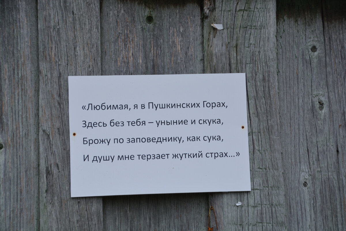 Несколько лет назад мы с Ульяшкой ездили в Пушкинские горы. Для меня это была вторая поездка в те места, для нее первая. Кроме пушкинских мест: Тригорского, Михайловского, Петровского посетили мы и дом, в котором жил Довлатов. Хотя домом эту развалюшку назвать сложно. Подойдя к дому мы увидели надпись и веревку накинутую на калитку и забор. Почему то подумалось что музей закрыт и мы решили хотя бы прогуляться вокруг. Около дома напротив двое ремонтировали газонокосилку, третий стоял наблюдал. К нему мы и обратлись с вопросом, работает ли музей. Он наклонившись к мужчине спросил: "Толик, музей работает? Ты не знаешь?" Ага, это тот самый Толик из "Заповедника". С женой. Мы осторожно зашли на территорию. "Дом Михал Иваныча производил страшное впечатление. На фоне облаков чернела покосившаяся антенна. Крыша местами провалилась, оголив неровные темные балки. Стены были небрежно обиты фанерой. Треснувшие стекла – заклеены газетной бумагой. Из бесчисленных щелей торчала грязная