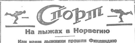 "От московских лыжников: Д.Васильева, Немухина, Санина, Дементьева, совершающих лыжный пробег в Осло – нами получены подробности их перехода по Финляндии – от Ленинграда до Гольсингфорса. Когда лыжники прибыли на финляндскую границу в Белоостров, их провожали ленинградские спортсмены, местные рабочие и пограничники-красноармейцы с красными знаменами и пением «Интернационала». А на другой стороне маленькой речки Сестры, отделяющей СССР от Финляндии их встречали финны с национальными желто-голубыми флагами. Лыжники переходят границу. Несколько минут формальностей и взрыв криков, пожатия рук, приветствия короткой речи и щелканье фотоаппаратов специальных корреспондентов газет Выборга и Гольсингфорса. На нашей стороне дружное «ура» и пение «Интенационала». Наши лыжники поворачиваются к границу, посылают прощальный привет и уходят, окруженные финнами. -Мы идем хорошо, – пишут они, - Дорога отличная. Идти легко. Местность гористая – мы то поднимаемся вверх, то спускаемся вниз, быстро скользя