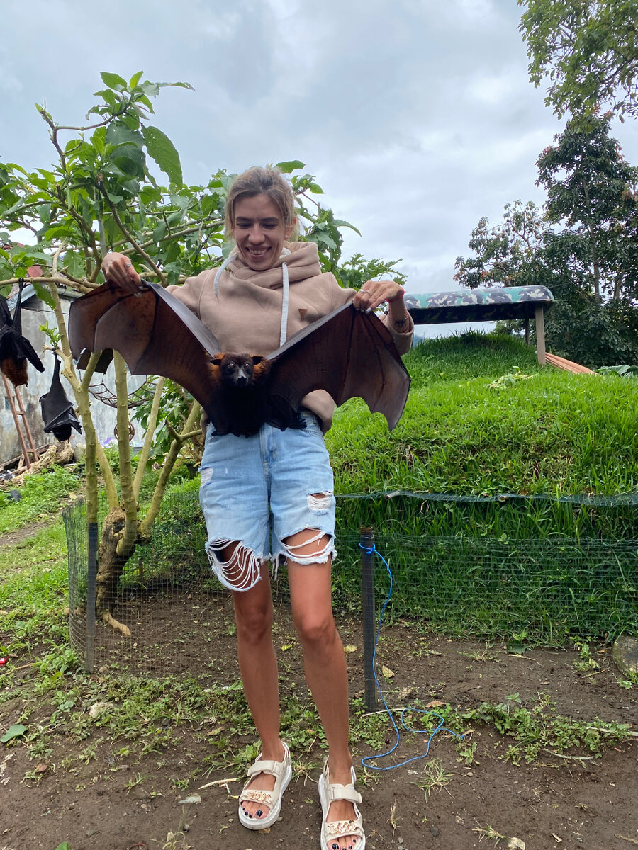 По пути домой после экскурсии с дельфинами о которой можно почитать здесь, нам захотелось заехать в место, где можно потрогать и пофоткаться с летучими лисицами. Я уже как-то рассказывала о Храме Летучих Мышей, но там можно было только посмотреть на них со стороны. А тут уже другая развлекуха😄 Летучие лисицы это самые большие представители семейства рукокрылых. Их мордочка похожа на собачью и именно поэтому они получили такое название. В основном они ведут ночной образ жизни. Когда они спят днем, то закутываются в свои крылья размахом до 130 см как в одеяло. Это выглядит очень мило😍 Питаются они не кровью, как можно было подумать, а фруктами, цветочной пыльцой и нектаром, для получения питательных веществ могут пить морскую воду. Странные конечно они товарищи😄 Говорят, что лисиц можно легко приручить, они привязываются к хозяину и не пытаются улететь, а если и улетают, то возвращаются обратно. По себе я заметила, что им нравится ласка, если погладить их по голове) Это не агр