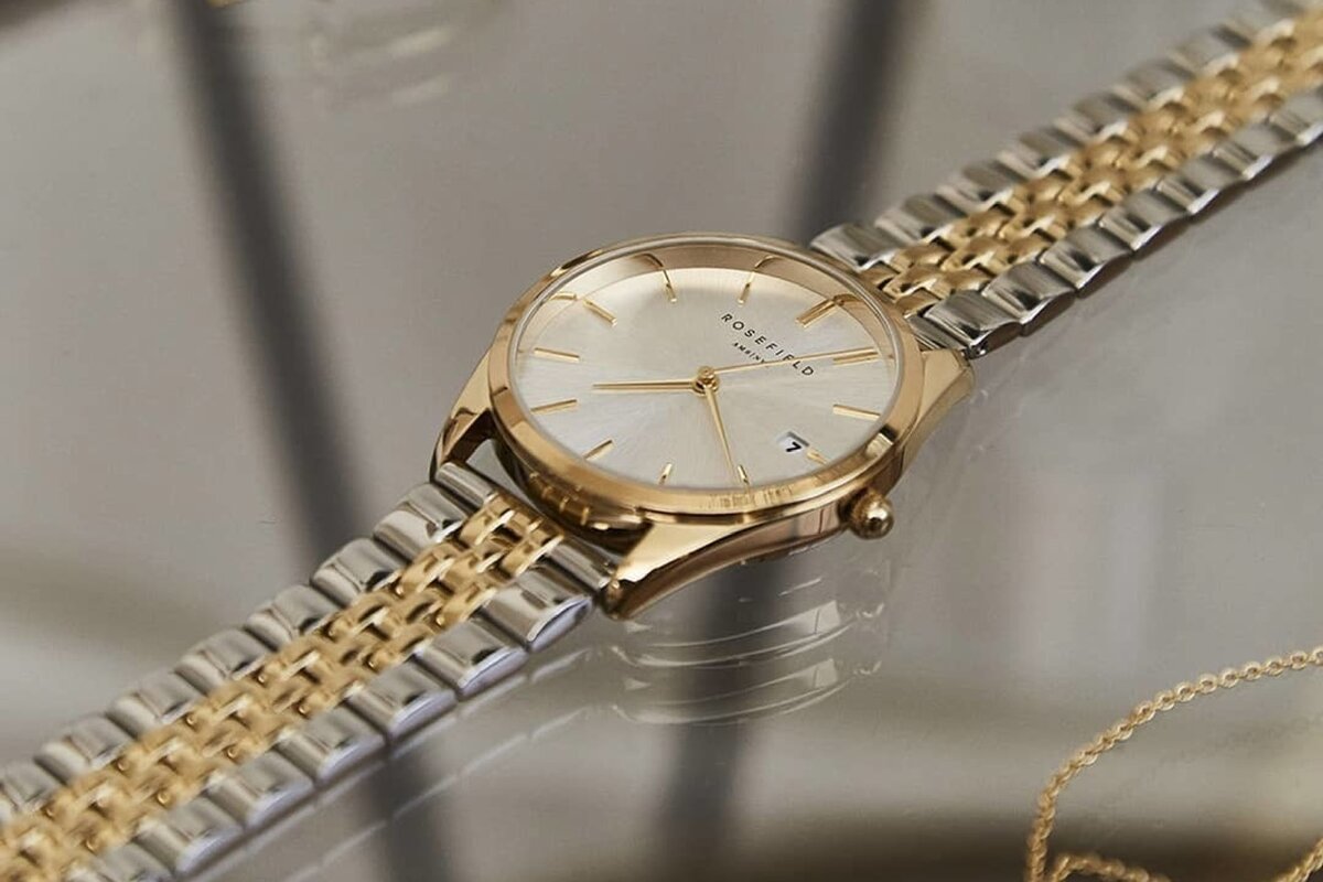 Какие выбрать часы, чтобы они сочетались с любыми аксессуарами и одеждой? Независимо от того, какого цвета бижутерия, носите ли вы украшения из золота или серебра, часы биколор безупречно дополнят образ! Кроме того, это отличная возможность сэкономить бюджет! В этом обзоре вы увидите самые стильные женские кварцевые часы биколор стоимостью до 30 000 рублей. Для удобства модели перечислены по размеру диаметра от маленького к большому. 1 Часы в трендовом квадратном тонком корпусе 22*24мм с золотистым PVD покрытием в оттенке розовое золото Rosefield QMWSSR-Q024 и Rosefield QMWSSG-Q023 в оттенке желтое золото. Эти две модели Rosefield серии Boxy XS вне всякого сомнения будут всегда актуальны благодаря минималистичному дизайну! Часы очень легкие и приятно облегают запястье за счет великолепно отполированного браслета! 2 Биколор Rosefield 26SRGD-271 в круглом золотистом корпусе диаметром 26мм с PVD покрытием в цвете розовое золото. 3 Еще одна миниатюрная модель круглых биколоров Rosefield A