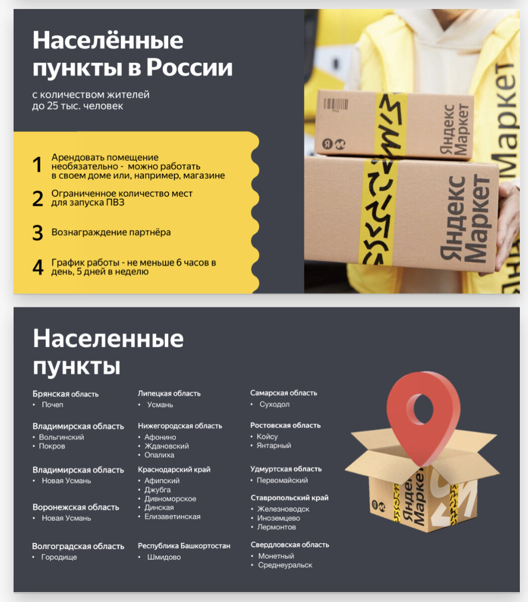 Тариф «Легкий старт» для ПВЗ Яндекс Маркет - Население поселка, города до 25-50 тыс. человек - ставка 2,25% от выдачи - можно выдавать из дома, магазина ——————— Аналог тарифа «Домашний ПВЗ» в Ozon. Теперь если локация позволяет, можно в гараже повесить вывески Озон и ЯМаркет 😀
