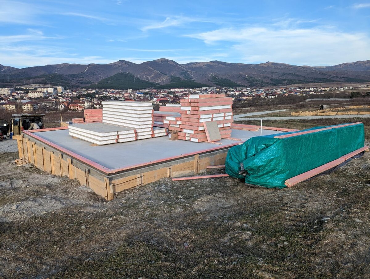 В начале этого года был изготовлен фундамент. Участок неровный, дом находится на склоне, но эту неровность в дальнейшем компенсирует отличная панорама! Площадь дома около 200 м2, включая видовую террасу. Обратите внимание, что на участке нет ни света, ни воды — и это не является никакой преградой в строительстве!!! Дом строится по «сарафанному радио». Заказчики наблюдали за недавно построенным нами здесь же доме. Видели полный цикл строительства, поэтому знают окончательный результат! Желающим строить дом в этих краях — есть возможность приехать на объект, получить консультацию и ознакомиться с деталями. Мы на связи: 89384607686