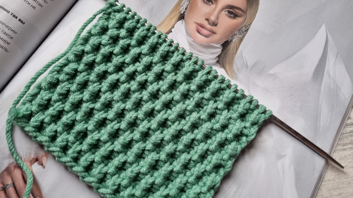 Узелковые столбики в шахматном порядке образовали очень выразительный рельеф. Из объёмной пряжи получается достаточно плотно. В других вариантах сохранит лёгкость и хорошую гибкость.