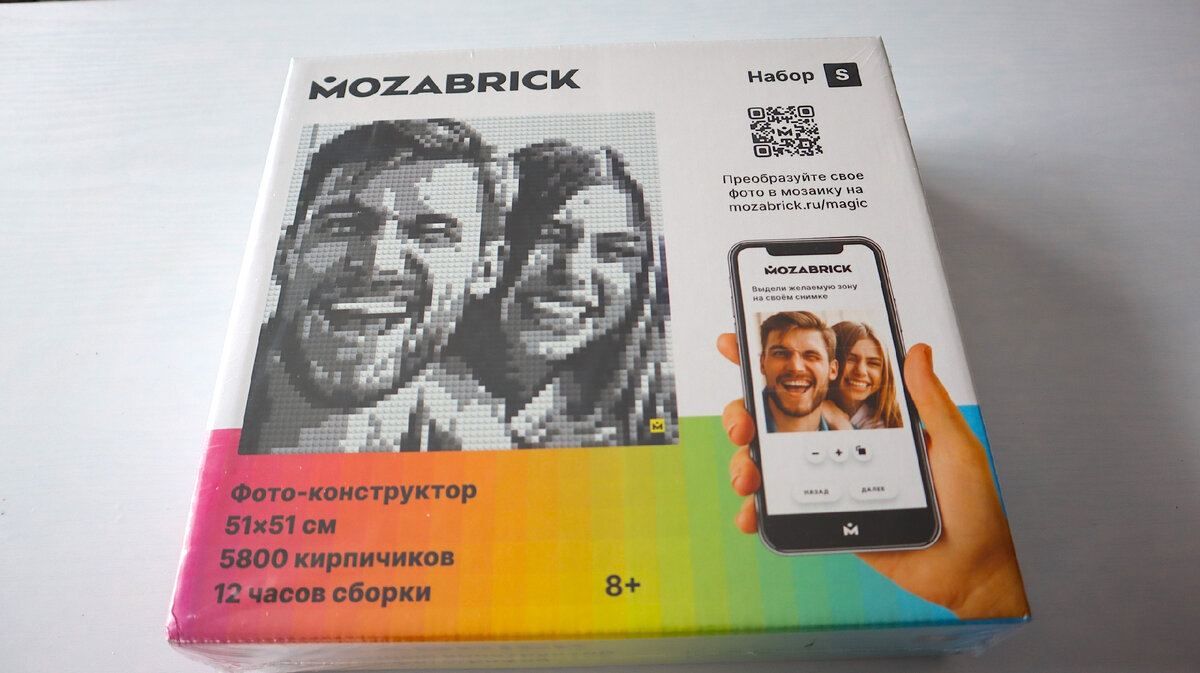 Всем привет! В современном мире трудно придумать необычный подарок, чтобы удивить близких, у людей есть все. Но все же есть такие вещи, которые никого не оставят равнодушными. Пару недель назад мне подарили невероятно интересный подарок- бесконечный фото-конструктор Mozabrick российского производства. Сначала подумала, что это развлечение только для детей, но познакомившись поближе убедилась, что эта вещь идеально подходит для отдыха и забавы взрослого человека. Конструктор дает возможность собрать любую фотографию. Например, селфи, которое передает все черты лица. Изюминкой комплекта является то, что мозаику можно разбирать и собирать заново много раз. Это что-то подобное, как мозаика из нашего детства, но на современный лад. В коробке есть все для сборки, 4 желтых квадрата-основы, на которые собираются маленькие детальки-квадратики 5 цветов. Части основы соединяются после сборки, преобразуясь в картину. В инструкции есть код, с помощью которого заходишь на сайт, загружаешь любую фото