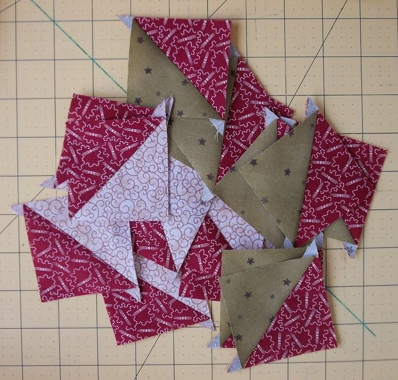 Очень часто, читая англоязычные блоги, я встречаю эту аббревиатуру HST. Сегодня расскажу, что это такое и как использовать...На самом деле, расшифровывается всё просто: Half Square Triangle - квадрат из двух треугольников. И любая лоскутница прекрасно знает, что без таких квадратов не обходится практически ни один блок. Как же рассчитать размер деталей и сшить наиболее экономичным образом? Всё, что я расскажу, - не моё изобретение. Просто я соберу в одном месте информацию, найденную мной в интернете. Прежде чем начать рассказ, хотелось бы уточнить некоторые термины. Конечный размер детали - это размер этой детали в изделии, т.е. без учёта припусков. Размеры выкраиваемых деталей, конечно, всегда даются с припусками.