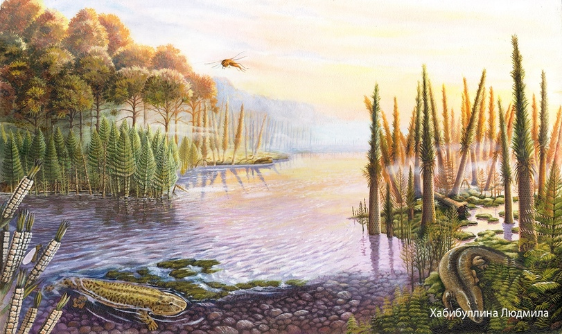 Выше – район Уфы 279 млн лет назад Наиболее богаты на окаменелости звероящеров позднепермские отложения Восточной Европы. Поэтому ещё в 1841 г. английский геолог Р. Мурчинсон выделил особый пермский период. Кама, Вятка, Волга и другие реки, близкие к Уралу, хранят большие залежи окаменелостей. Древний Урал в пермское время был высотой до нескольких тысяч метров, вероятно, как Гималаи. Рос он в течении всего периода. Западнее Урала располагалось Восточно-Русское море. В начале перми оно занимало земли почти от Урала и до Москвы, соединяясь с севера и юга с океанами Панталасса и Тетис. Позже связь с южным океаном исчезла, а потом и с северным. От моря осталось большое очень солёное озеро, в котором жизнь сохранялась у берегов, куда впадали реки. Дожди и реки вымывали из гор массы породы, песок, глину, камни, которые постепенно засыпали Восточно-Русское море, образовав обширную равнину. Постепенно часть её снова затопило, так появилось Казанское море. Сама равнина от гор до моря занимала