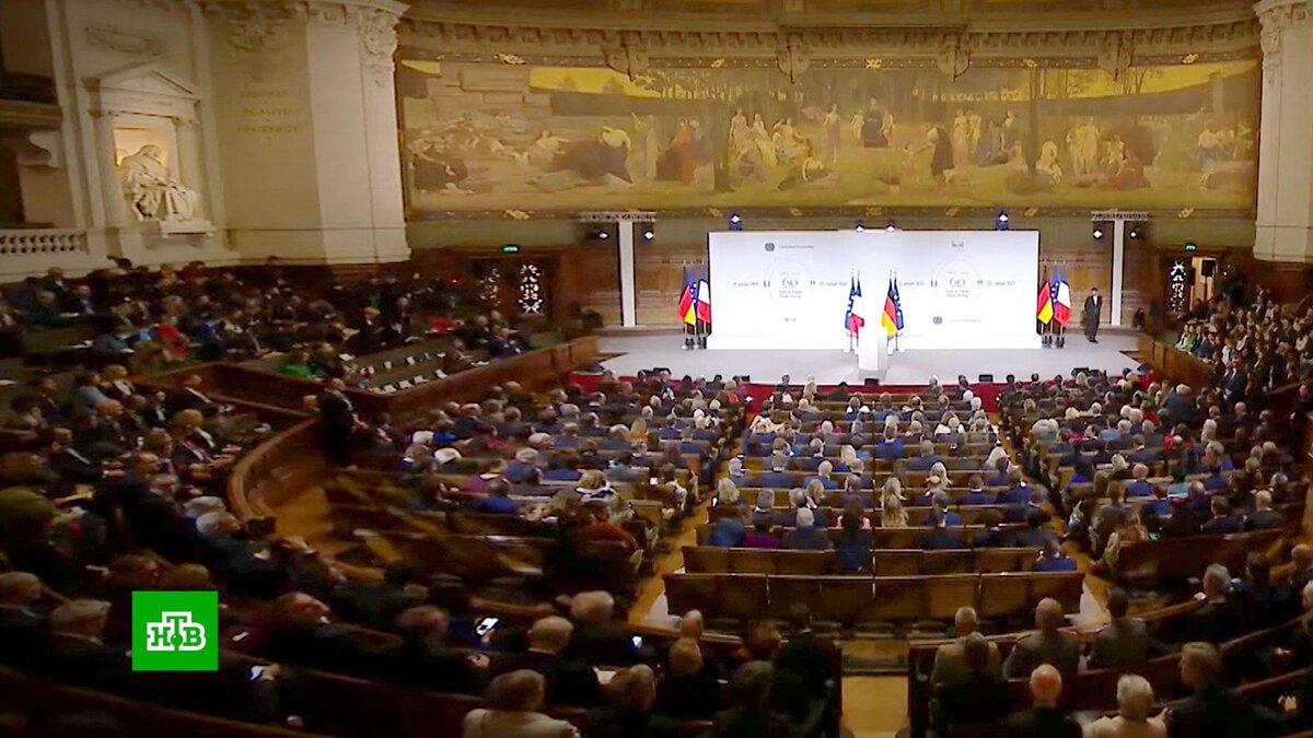 [ Смотреть видео на сайте НТВ ] Франция и Германия непоколебимы в вопросе поддержки Украины, но Европе нужна своя стратегия, заявил Эммануэль Макрон по итогам встречи с Олафом Шольцем. Переговоры лидеров Франции и Германии прошли в Елисейском дворце в 60-ю годовщину подписания Парижем и Берлином Договора о дружбе. Однако встреча показала, сколько разногласий накопилось между союзниками и в вопросах энергетики, и в поставках тяжелых вооружений Киеву, и в отношении общего заокеанского партнера − США. Торжественный прием в университете Сорбонны — очередная демонстрация единства на фоне длинного списка разногласий между Парижем и Берлином. Эммануэль Макрон и Олаф Шольц вынуждены искать компромисс, принимая во внимание наглость Вашингтона. Это касается как протекционистского «Акта о снижении инфляции», принятого в США летом, так и диктата американцев в энергетической сфере. Но на первое место и Макрон, и Шольц поставили Украину. Эммануэль Макрон, президент Франции: «Эта дата, 60 лет Договор