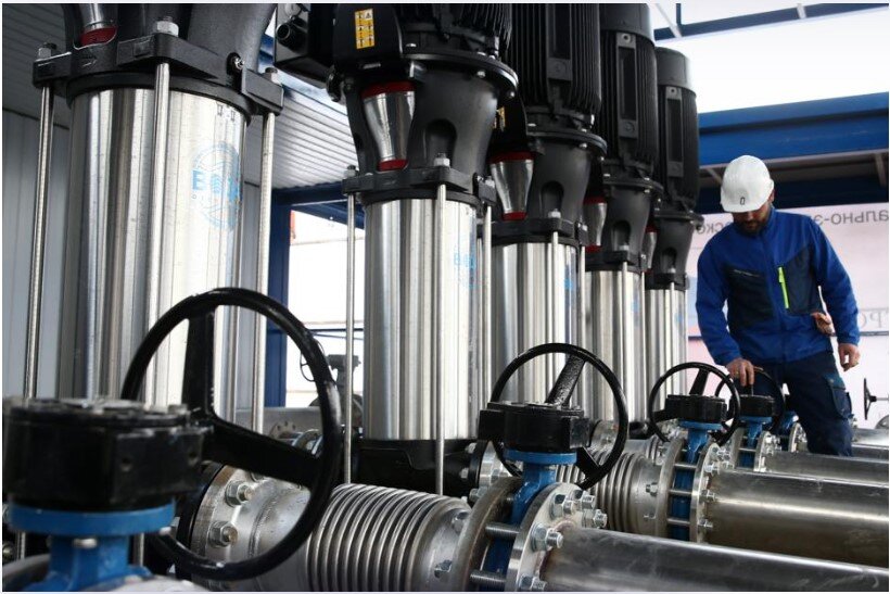 Специалисты Военно-строительного комплекса Минобороны России приступили к строительству крупного водовода для обеспечения жителей Донбасса чистой питьевой водой. Новое гидротехническое сооружение пройдет по территории Ростовской области и Донецкой народной республики до канала Северский Донец – Донбасс. Мощность водовода составит до 300 тыс. кубических метров воды в сутки. Следует отметить, что это уже восьмой водовод, построенный силами Минобороны России для обеспечения водой жителей освобожденных территорий. (Ранее военные строители возвели и запустили Черновский водовод под Дебальцево, в Волновахе, Ровеньках, Докучаевске, линию из Ханженковского водохранилища в канал Северский Донец, и тд). Заместитель министра обороны РФ Тимур Иванов в составе рабочей группы совместно с заместителем руководителя Федерального казначейства РФ Эли Исаевым на вертолете совершили облет районов масштабного строительства объектов водовода на территории ДНР. Проектом предусмотрена прокладка двух нитей маги