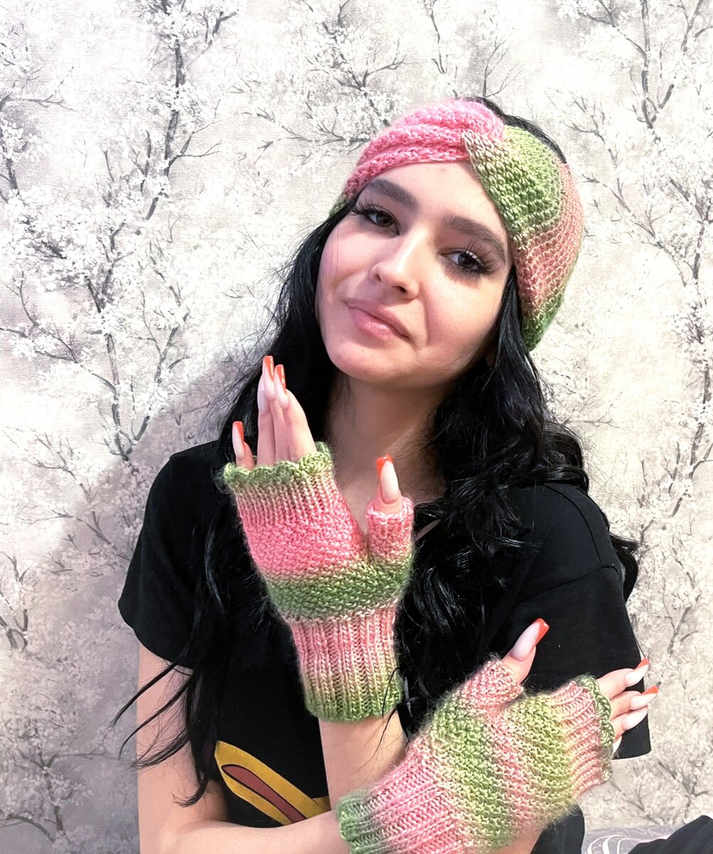 Для того, чтобы связать митенки, нам понадобится: пряжа 180м на 100 гр. Спицы чулочные 3, спицы круговые 3 и 2, крючок 2.5 Узоры используемые в изделии : резинка 2х2, резинка 1х1, узор рис ( 2 ряда - 1лиц, 1 изн, 2 ряда - 1 изн, 1 лиц) На чулочные спицы 3 набрать 40 петель. Вяжем резинку 2х2 8 см. Далее 4 ряда вяжем узором рис, затем делаем прибавление для клина большого пальца: 1 ряд - 1 лиц, 1 накид, 1 изн, 1 накид, далее по узору до конца ряда. В каждом втором ряду петли накида провязываем по рисунку. Так делаем 7 прибавок по две петли через ряд. Затем, провязать ещё 4 ряда по узору без прибавок. Затем взять круговые спицы и провязать петли на большой палец, прибавив ещё одну петлю (16 петель на большой палец). И связать палец 2 см узором рис, и 2 см резинки 1х1. Закрыть петли, кончик нити обрезать и спрятать. Затем присоединить нить в основание большого пальца, оставив длинный кончик, им можно подтянуть петли начала и конца ряда большого пальца, что бы в промежутке не было дыро