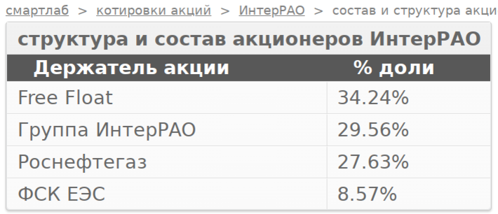 Структура акционеров выглядит следующим образом: