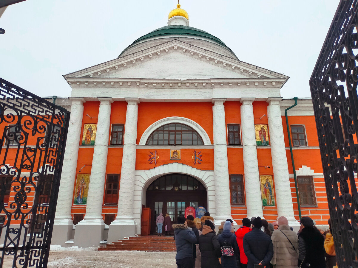 Я не воцерковленный, но крещеный человек. Вести себя в церкви умею, молитвы знаю, так что если оказываюсь рядом с чудотворной иконой - стараюсь к ней попасть, дабы свечку поставить, за здравие близких попросить, за упокой помолиться. Так что, выбирая экскурсию по Казани предпочла ту, в которой привозят к чудотворной иконе Казанской Божией Матери. В общем, по Казани нас повозили, чаем/сладостями угостили, сувениры купить дали - привезли нас к Казанско-Богородицкому монастырю. Казанско-Богородицкий монастырь - комплекс церквей и храмов: - двухэтажный корпус с Крестовоздвиженской церковью, построенный в 1882-1887 гг., - Софийская надвратная церковь, - двухэтажные Настоятельский и Никольский корпуса, построенные в 1810-1843 гг. по проекту архитектора Я.М.Шелковникова. - церковь Николы Тульского, возведенная в 1810-1816 гг. -Казанский собор с Пещерным храмом. Причем Казанский собор был построен совсем недавно, на месте разрушенного Казанского собора, а Пещерный храм - оригинальный, ус