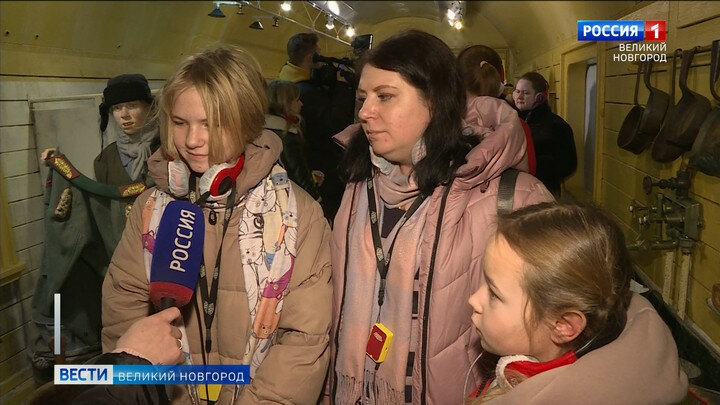 Семьи мобилизованных с экскурсией посетили "Поезд Победы", когда он находился в Великом Новгороде
