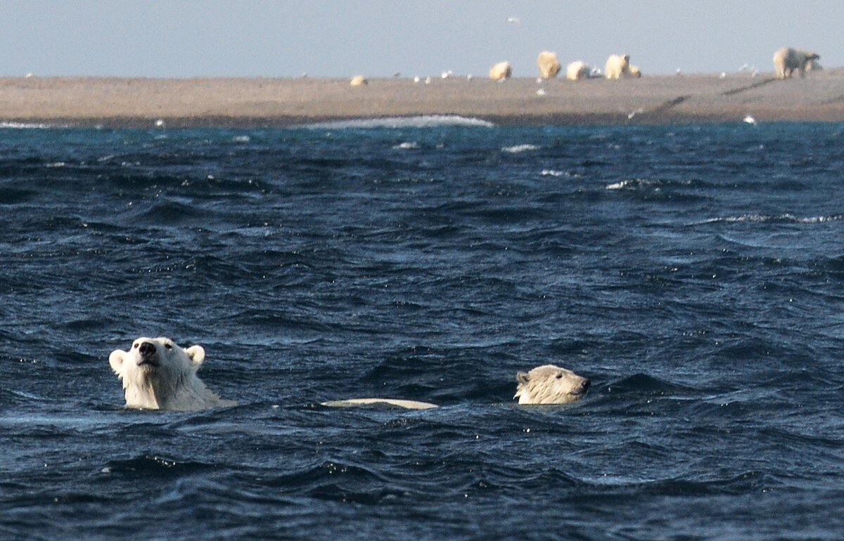 Белые медведи на мысе Блоссом острова Врангеля в Чукотском автономном округе