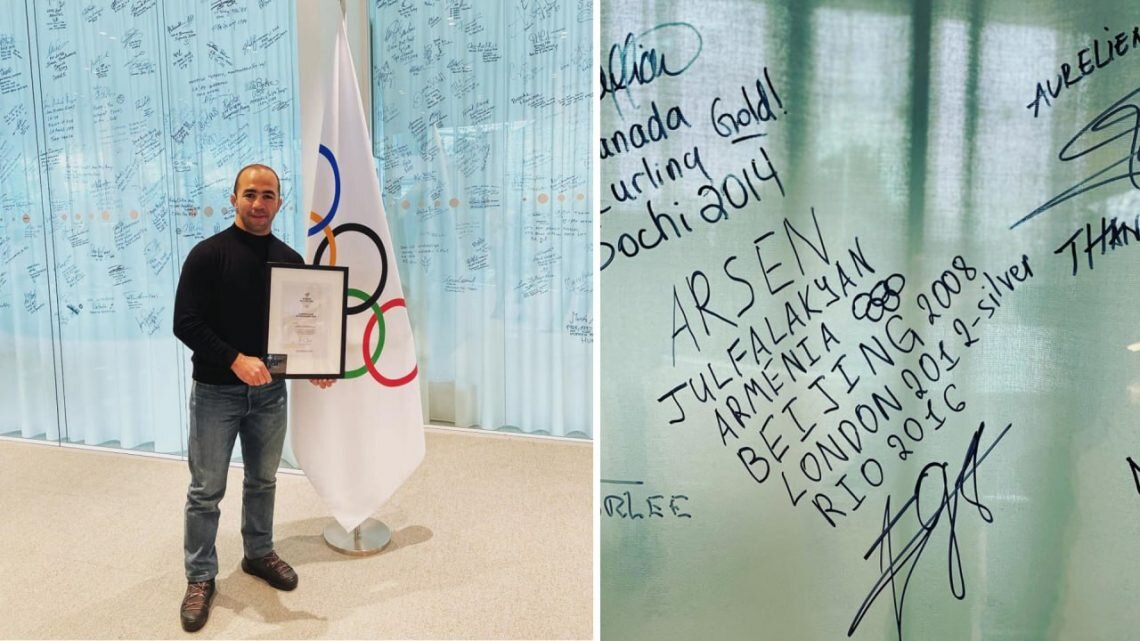 Օլիմպիական խաղերի արծաթե մեդալակիր, աշխարհի և Եվրոպայի չեմպիոն ըմբիշ Արսեն Ջուլֆալակյանն այցելել է Միջազգային օլիմպիական կոմիտե և արժանացել հատուկ պատվոգրի։ «Որպես Օլիմպիական խաղերի եռակի մասնակից հրավիրված էի Միջազգային օլիմպիական կոմիտեի մարզիկների բաժին` գրառում կատարելու «Օլիմպիական պատին»: Արժանացա նաև հատուկ պատվոգրի»,- ֆեյսբուքյան իր էջում գրել է Ջուլֆալակյանը: Ջուլֆալակյանը հավելել է, որ միջոցառումը շատ հիշարժան էր ու զգացմունքային։ «Ինձ ասացին, որ ես առաջին հայն եմ, ով ստորագրել է Օլիմպիական պատին»,- հավելել է ընբիշը։ Լրացուցիչ տեղեկությունների համար այցելեք կայք Հայաստանի նորությունները Telegram-ում