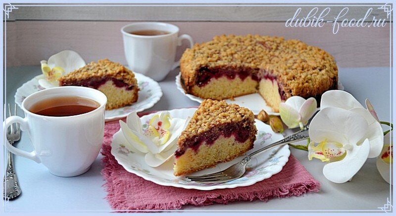 тесто: начинка: штрейзель: Способ приготовления Вишню промыть, удалить косточки.
